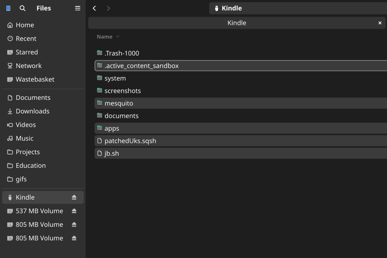 .active_content_sandboxfolder, make sure to also delete any files with a name similar toupdate.bin.tmp.partialfrom your Kindle to prevent an automatic update - Reboot your Kindle