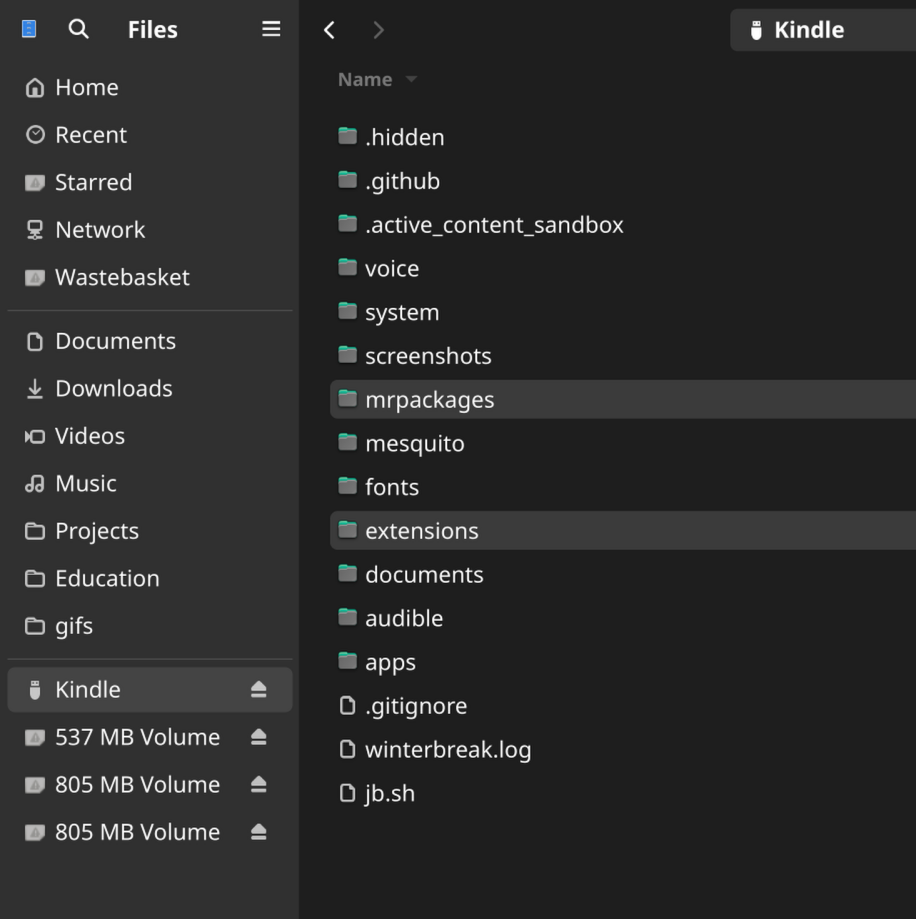 Update_KUALBooklet_hotfix_*_install.binmay fail if there is not enough free space on your Kindle. If you are using the “fill storage” method to block updates, make sure to free up some space before proceeding with these steps. - Verify the location of all the folders and files on the Kindle